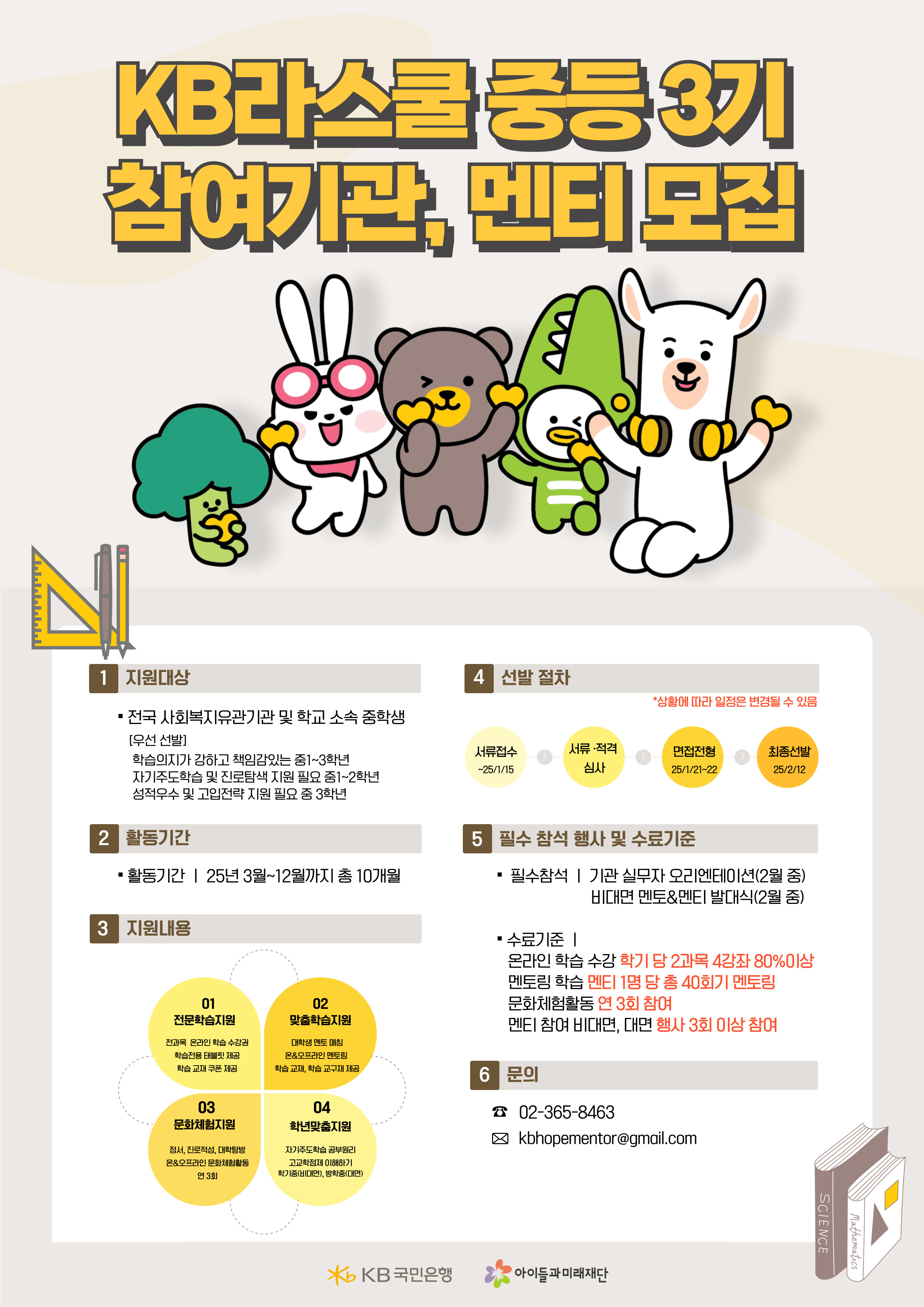 [아이들과미래재단][모집] 2025 KB Dream Wave2030 KB라스쿨(중등) 3기 참여기관,멘티 모집(~1/15까지)