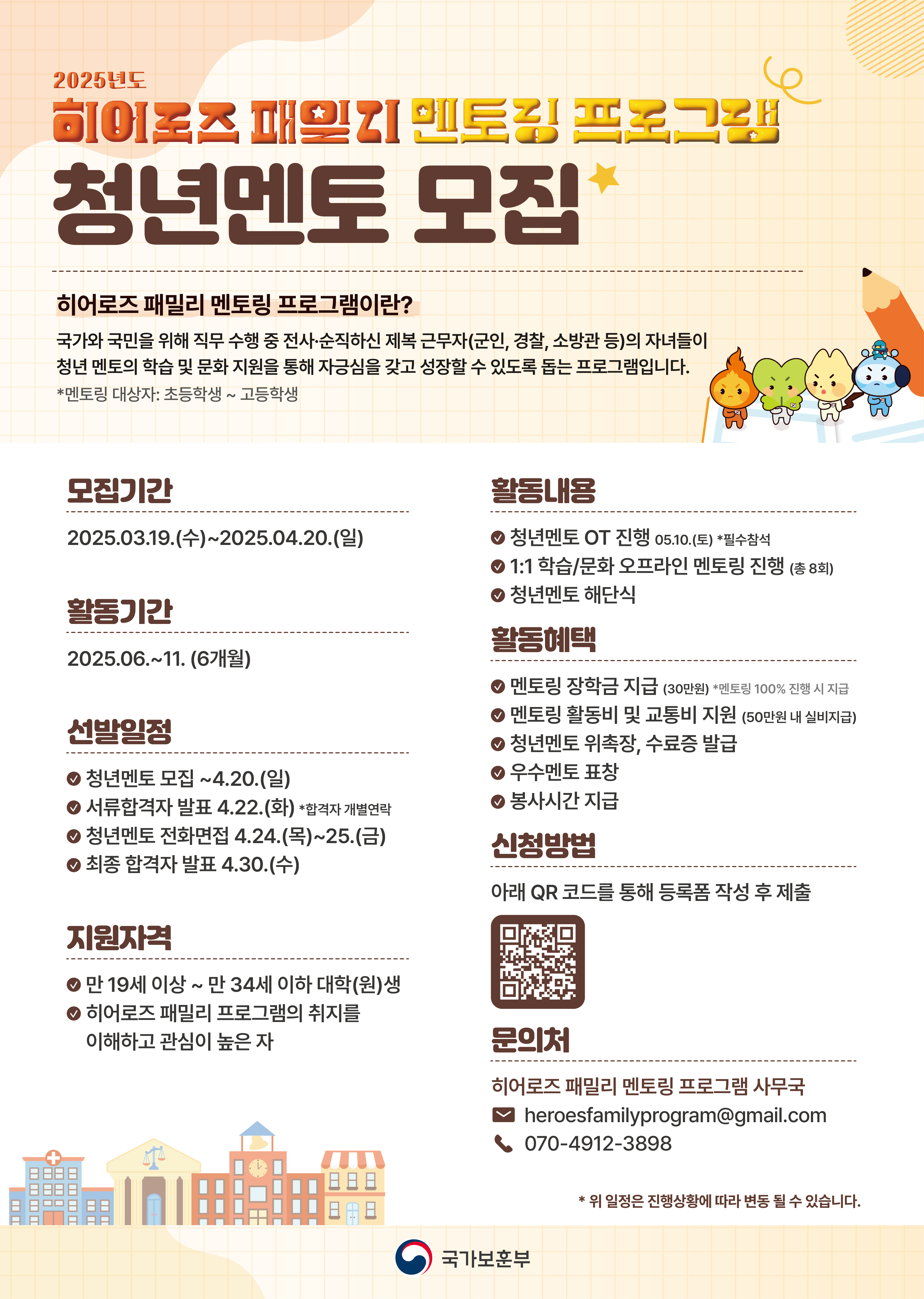 [국가보훈부] 2025년도 히어로즈 패밀리 멘토링 프로그램 청년멘토 모집