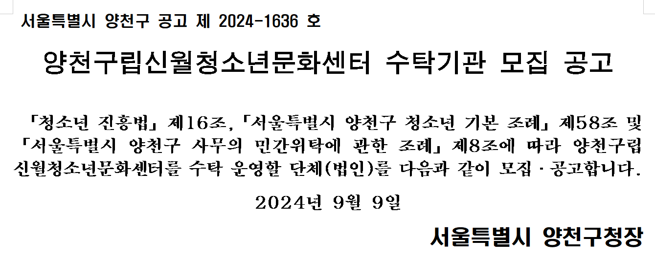 [양천구] 양천구립신월청소년문화센터 수탁기관 모집 공고