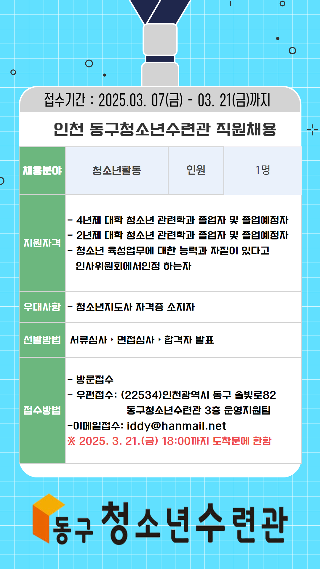2025-2차 동구청소년수련관 직원채용 공고